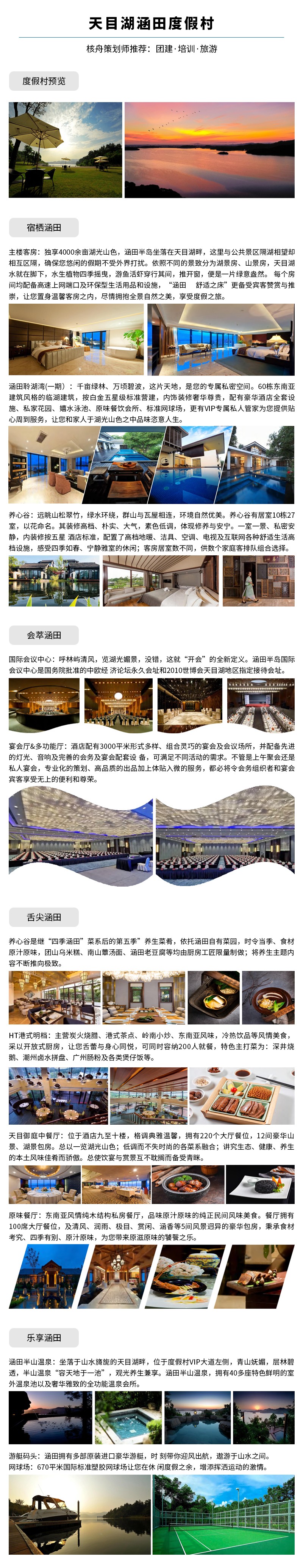 核舟溧陽拓展基地-天目湖涵田度假村是由江蘇亞東建設發展集團投 資經營的大型旅游度假綜合體,被譽為長 三角獨具魅力的旅游度假勝地和最具影響力的國際會議中心,由涵田度假村酒店、 涵田聆湖灣、半山溫泉組成,是國務院批準的中歐經濟論壇永久會址和世博會天目 湖地區唯一指定接待酒店。